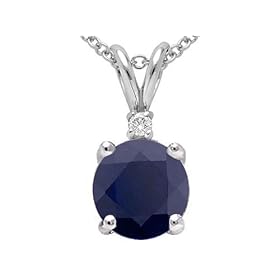 14k Genuine Round Sapphire Pendant crafted in 14 kt White Gold Dimensions: 13mm. long x 6 1/2mm. wide Stone Information: 1.50 Carats Black Sapphire Round 7mm., 0.03 Carats Round Diamonds Diamond Quality: I Color, SI Clarity Made in USA Free 16 inches 14kt gold chain included. - FREE GIFT BAG! FREE GIFT CARD!. Our Style Number 21720